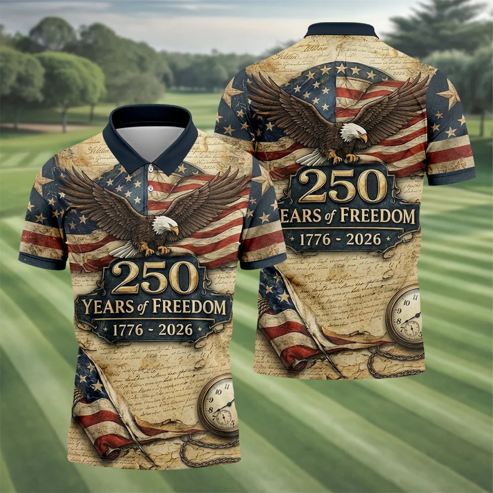 250 Years Of Freedom Black And White Patriotic Golf Shirt, 4th Of July Golf Shirts For Men