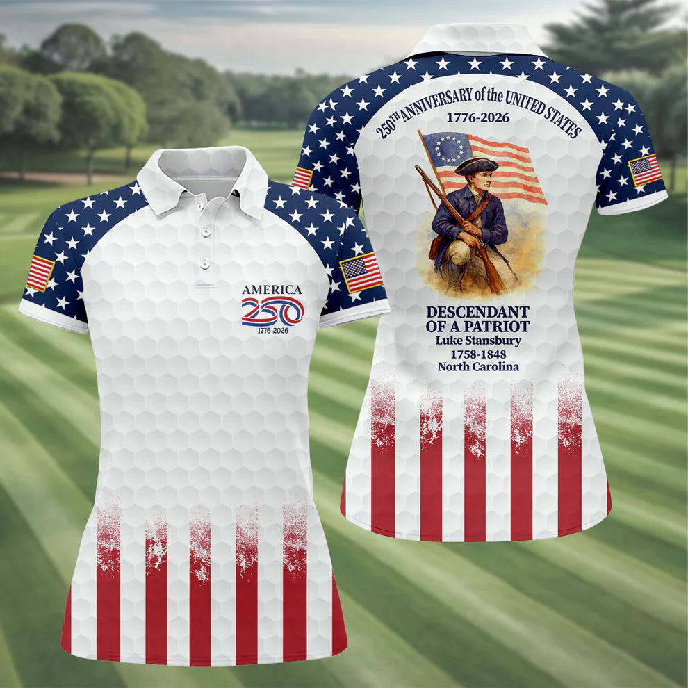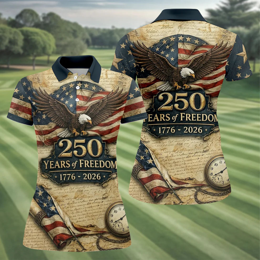 250 Years Of Freedom Black And White Patriotic Golf Shirt, 4th Of July Golf Shirt For Women