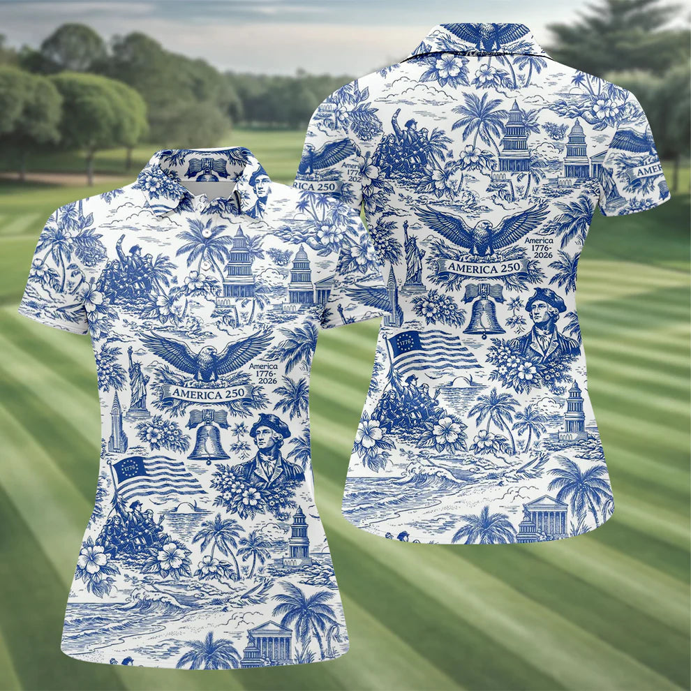 250 Years Of America Tropical Vibe Vintage Golf Polo Shirt, Patriotic 4th Of July Golf Shirt For Women (Copy)