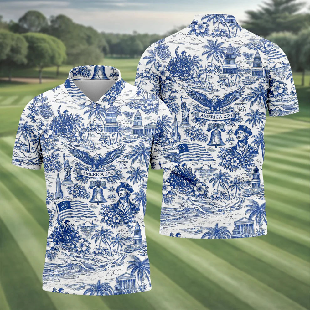 250 Years Of America Tropical Vibe Vintage Golf Polo Shirt, Patriotic 4th Of July Golf Shirts For Men